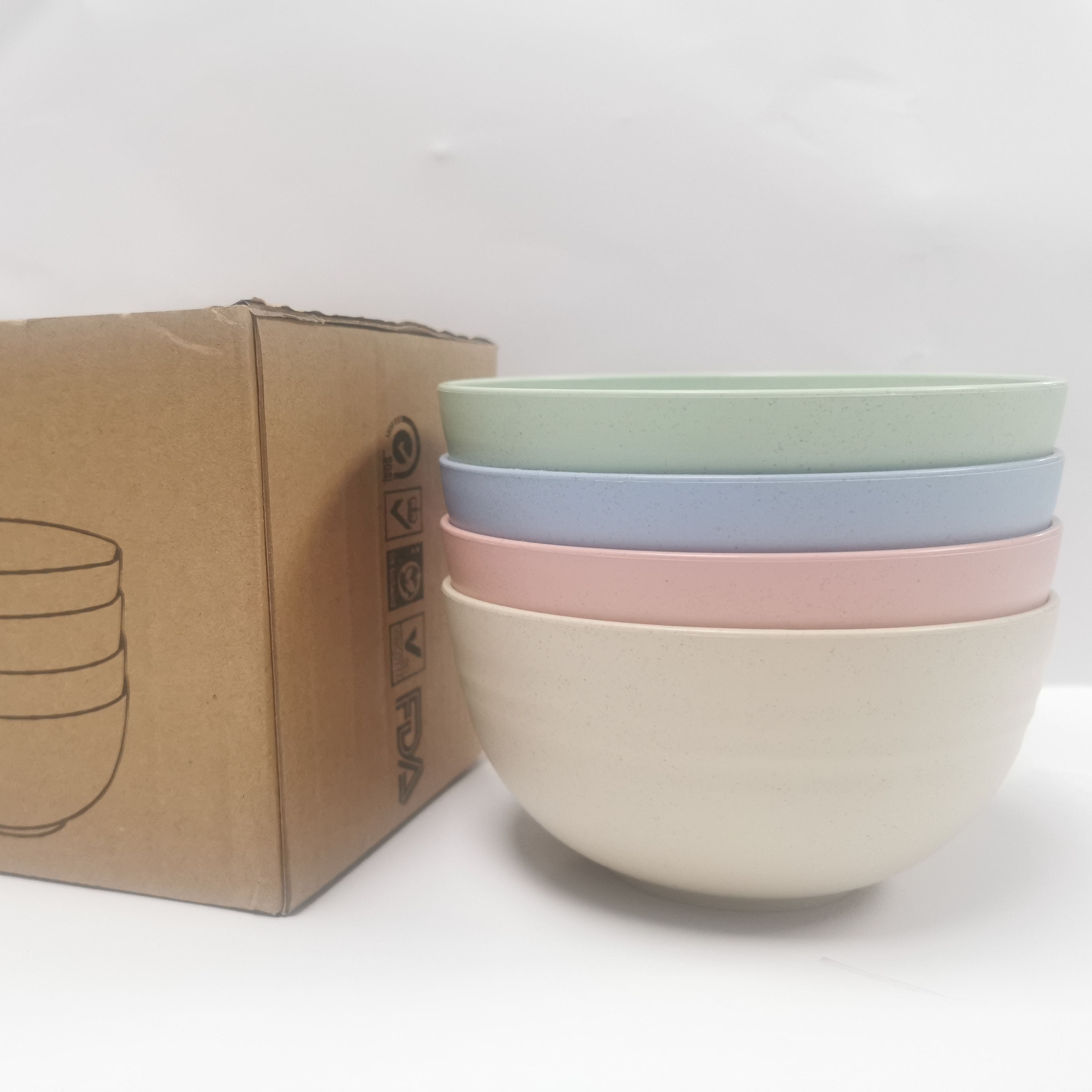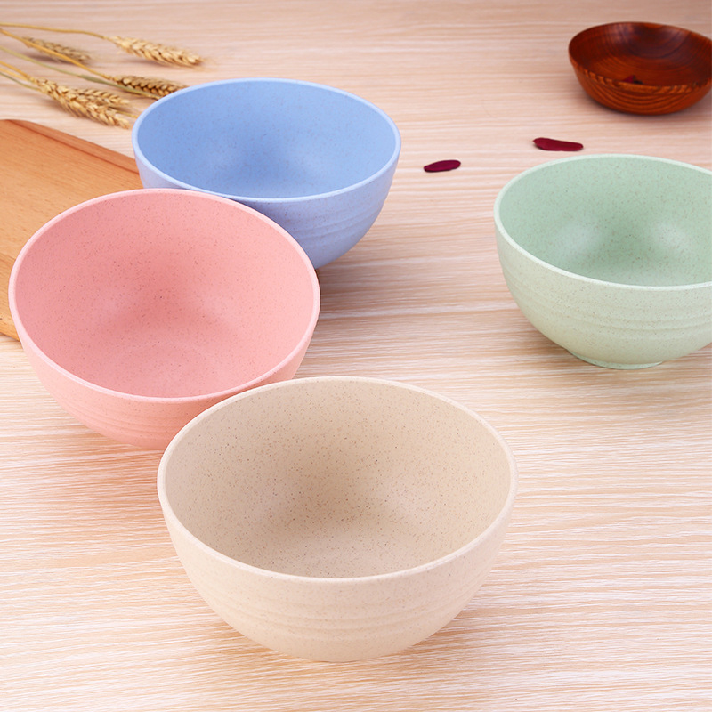 4-Piece Set of Minimalist Modern Plastic Salad Bowls Eco-Friendly Cereal Fruit PP Noodle Wheat Straw Bowl Customizable Technique