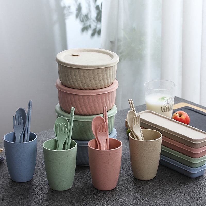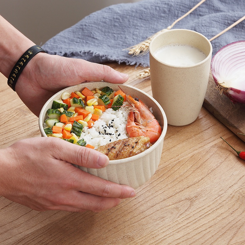 Best Selling High-quality Colored Noodle Bowl with Cover, Environment-friendly and Reusable Wheat Straw Bowl Salad Bowl