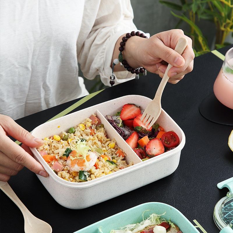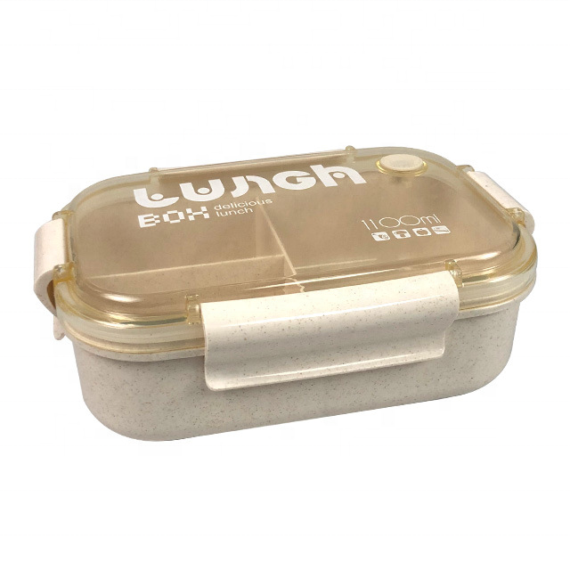 Best Selling Wheat Straw Lunch Box Food Storage Container Degradable 1100ml Rectangular Three Grid Children’s Wheat Straw Bento