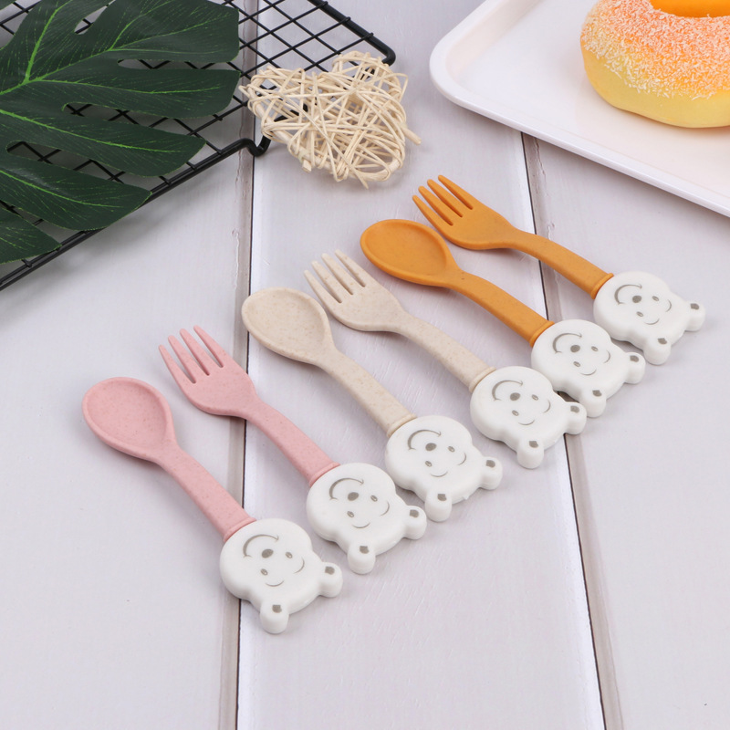 Cartoon practical wheat straw bear tableware set lovely fall resistant degradable environmental protection dinner bowl
