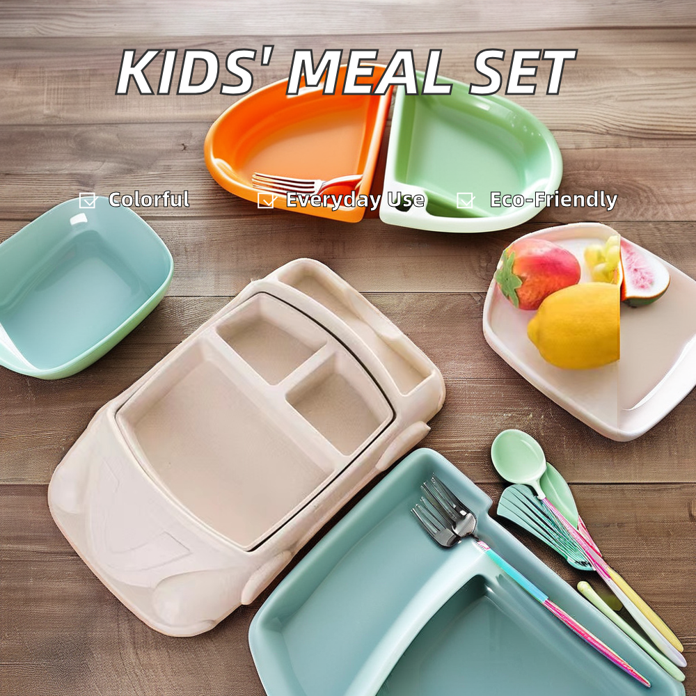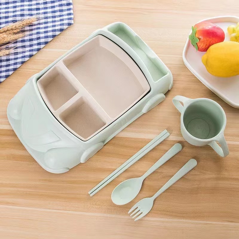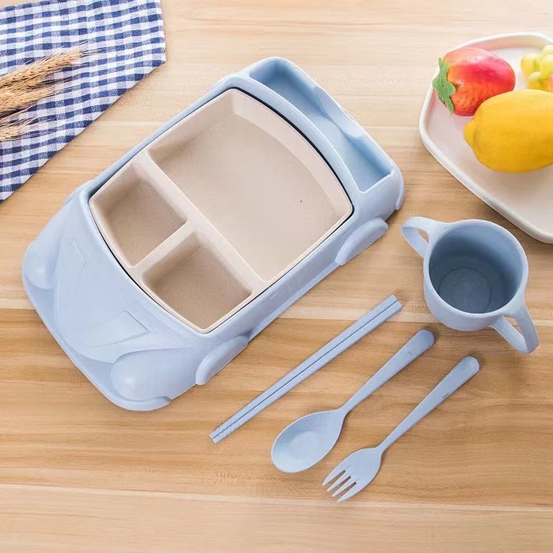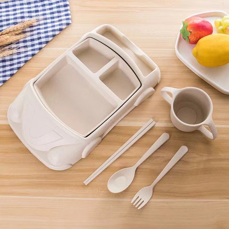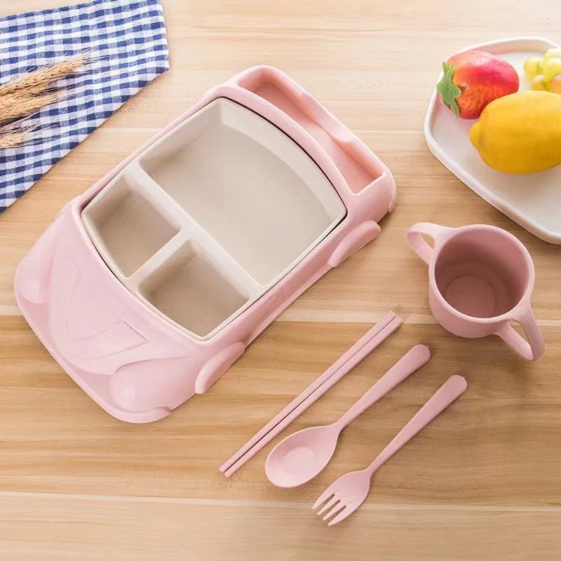 Children’s Tableware Set Car-Shaped Cup Plate Baby Food Containers Infant Wheat Straw Fiber Packaged Box Kids Training Dining