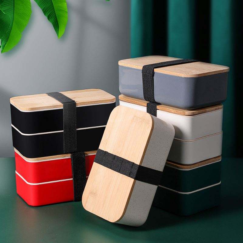 Custom Eco Friendly Biodegradable Food Container Wheat Straw Fiber School Office Bamboo Lid Bento Lunch Box