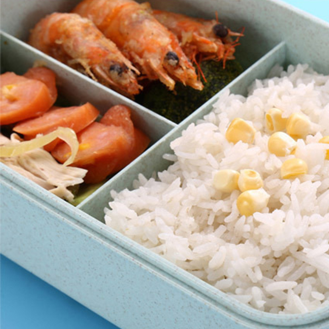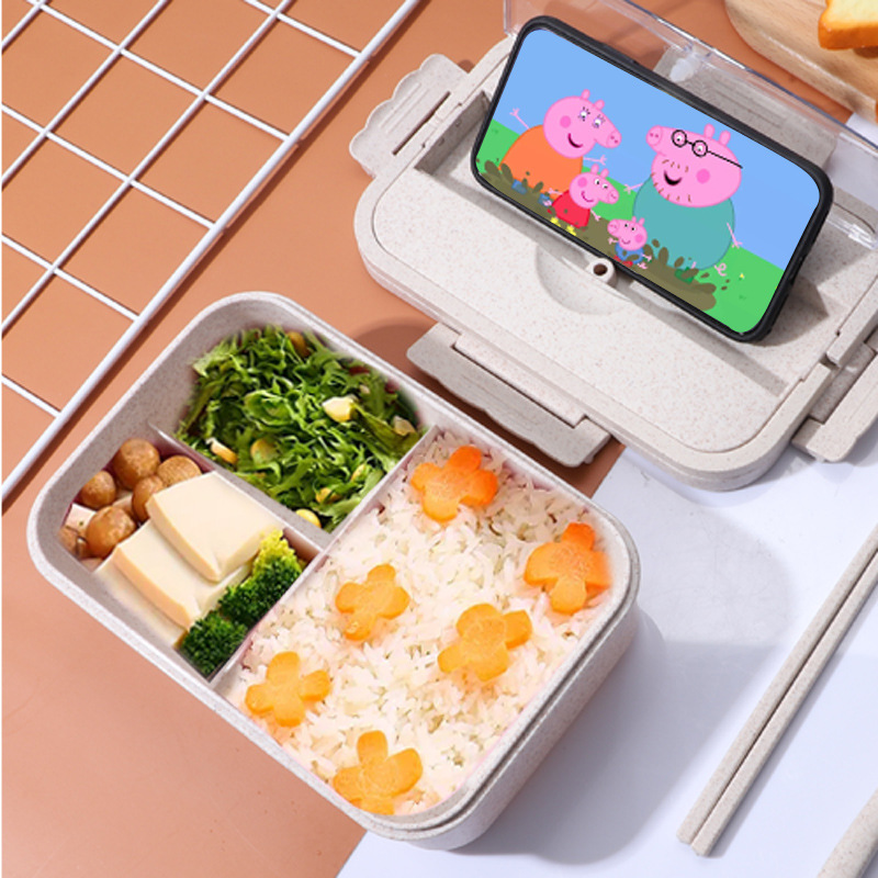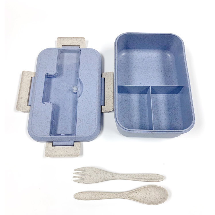 Customized Wholesale Wheat Straw Bento Box Microwave Safe Rectangle Food Container Divided Single Layer Lunch Box With Tableware