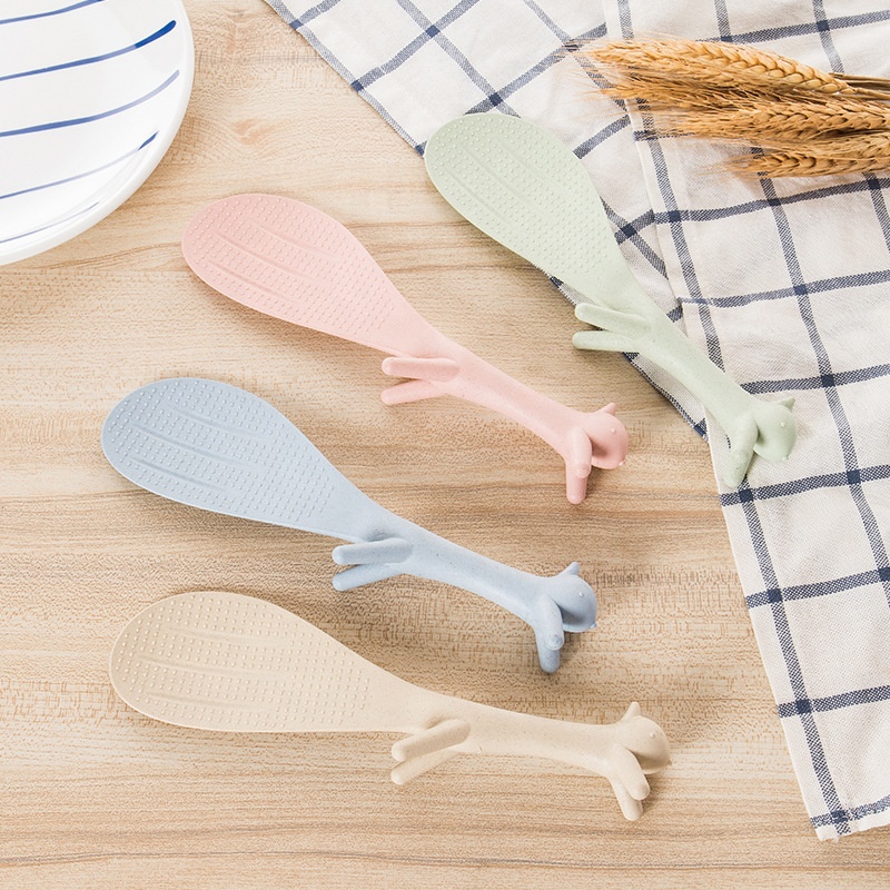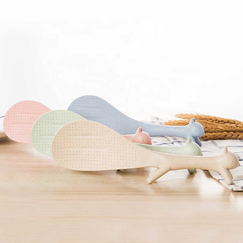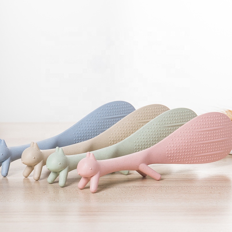 Cute Squirrel-Shaped Biodegradable Rice Spoon Environmental Friendly Wheat Straw Utensil Non-Stick Kitchen Tool