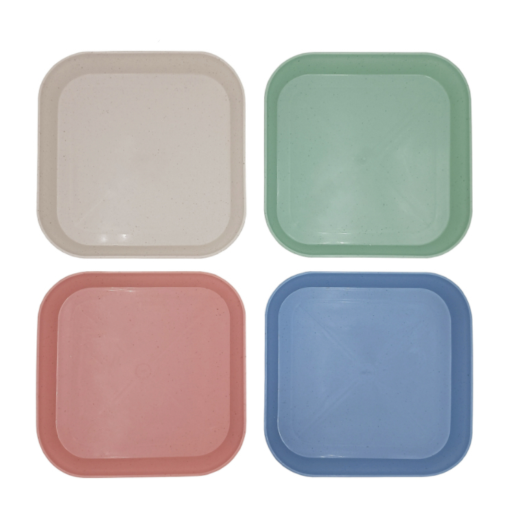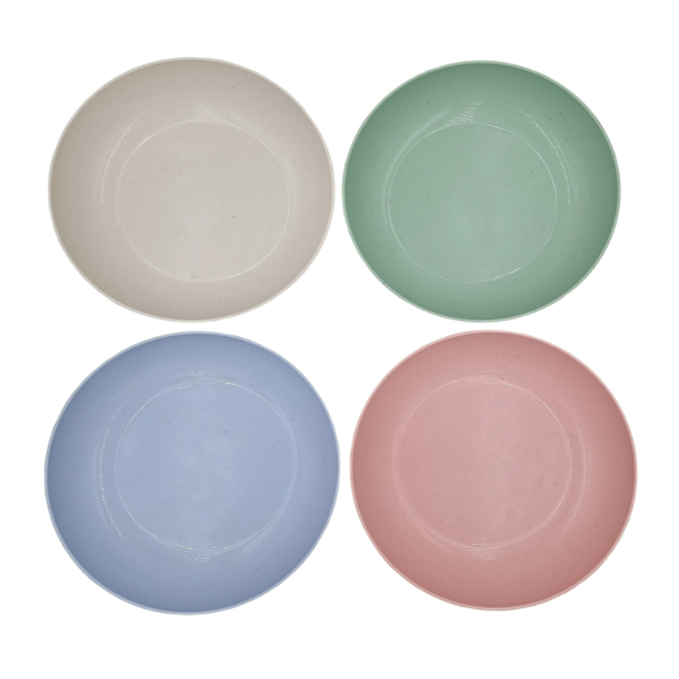Dining Table Household Mixed Colors Plastic Base Can Heated Snack Bone Dish Cake Fruit Tray Wheat Straw Fiber Food Plate