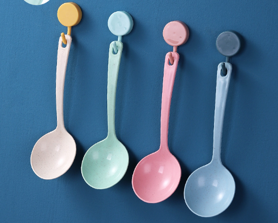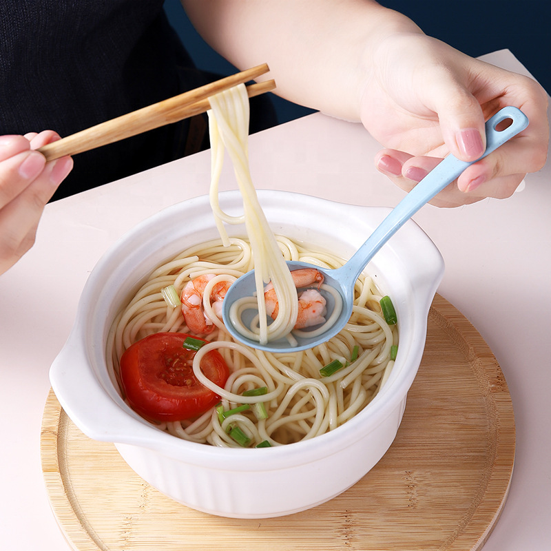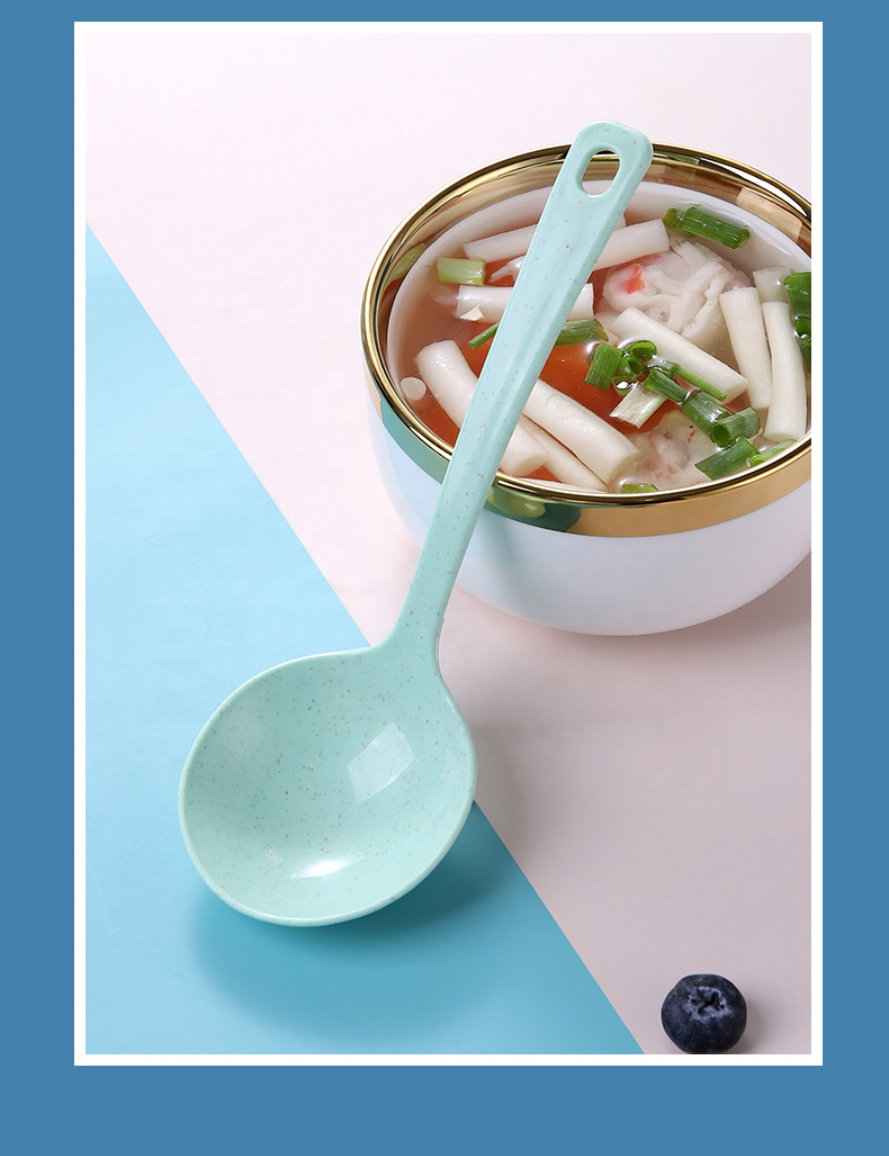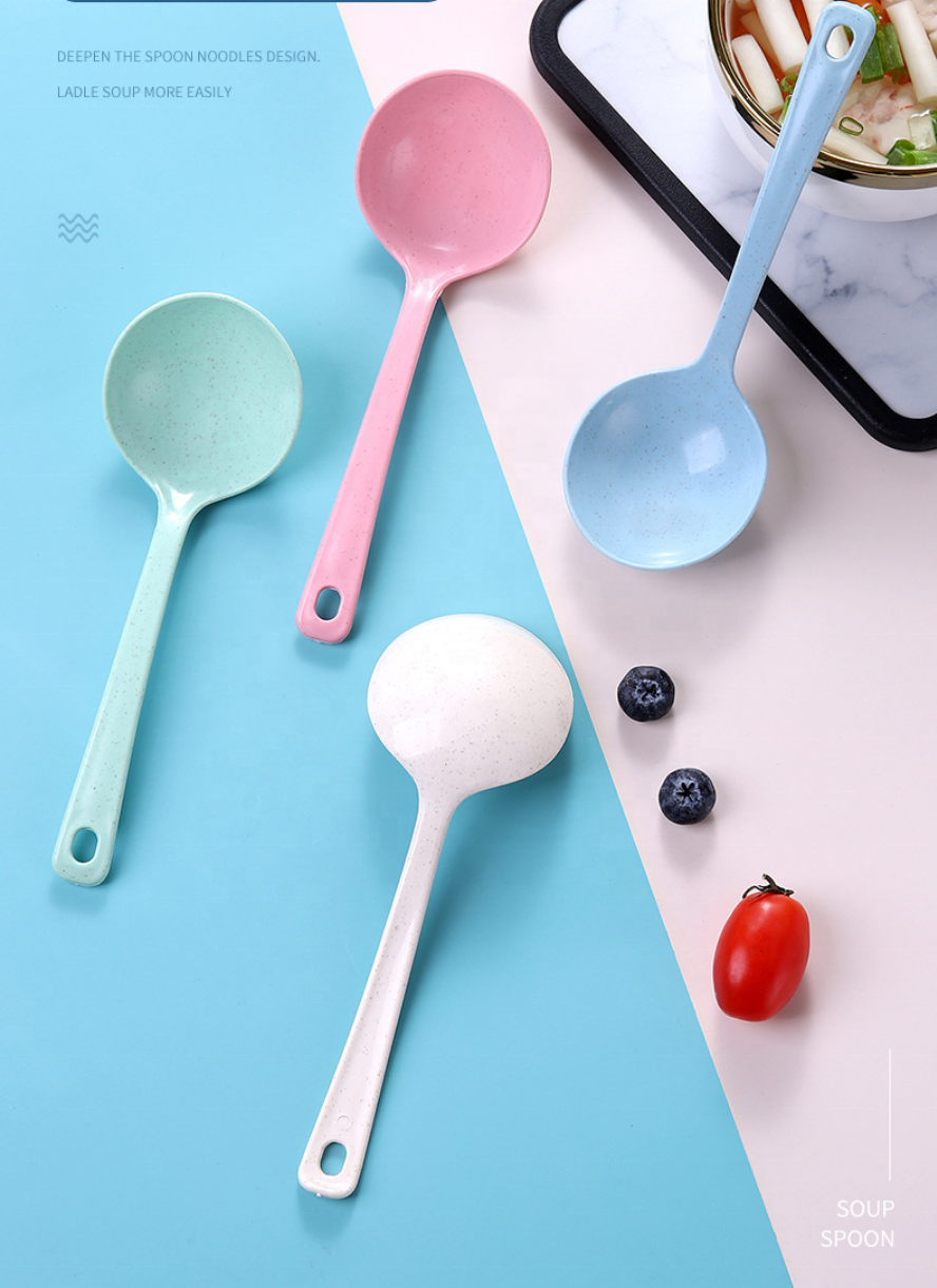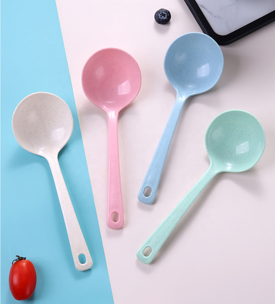 Eco Friendly and Reusable Wheat Straw Fiber Soup Spoon Circular Multi-color Straw Spoon Handle Long Spoon Kitchen Accessory