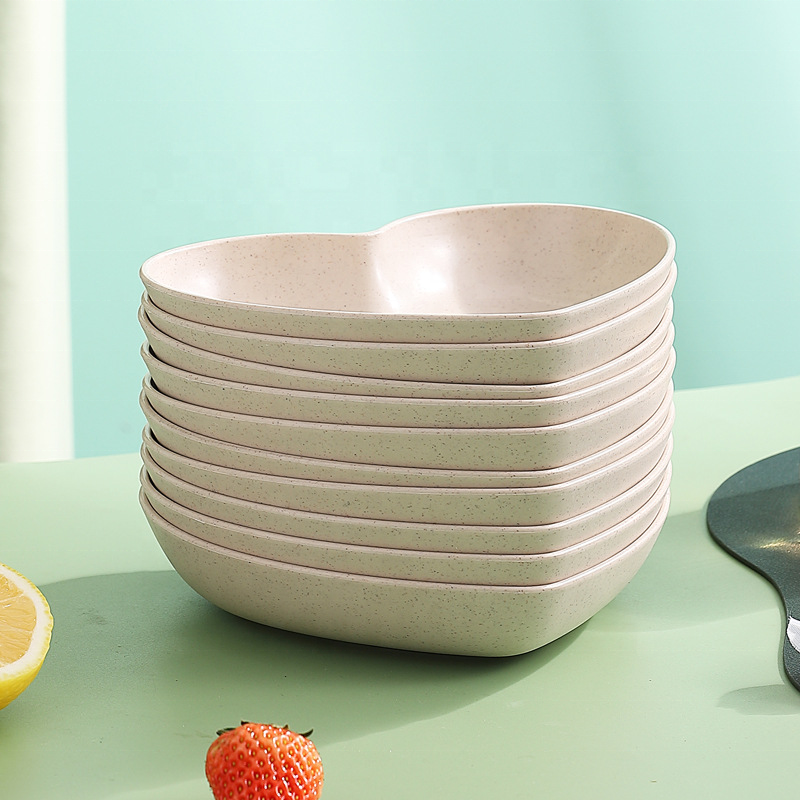 Eco Friendly and Reusable Wheat Straw Plate Set Non Fragile and Biodegradable Heart-shaped Meal Plate Dessert and Snack Plate