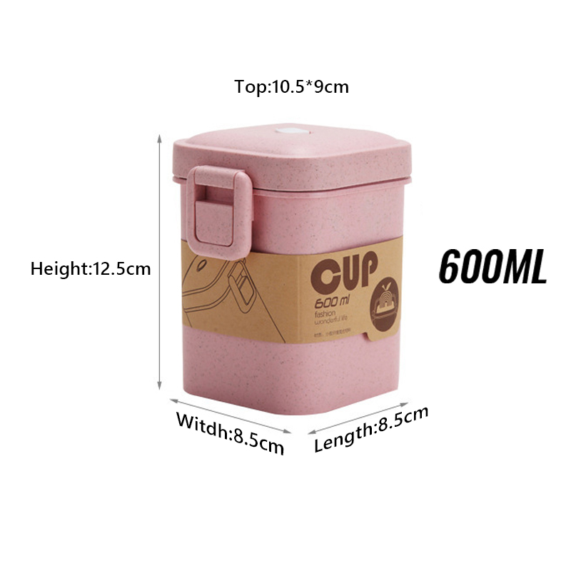 Eco-friendly Wheat Fiber Hot Soup Bowl with Cover Microwave Jar Plastic Soup Container Mug with Lid Packaging Box Soup Cups