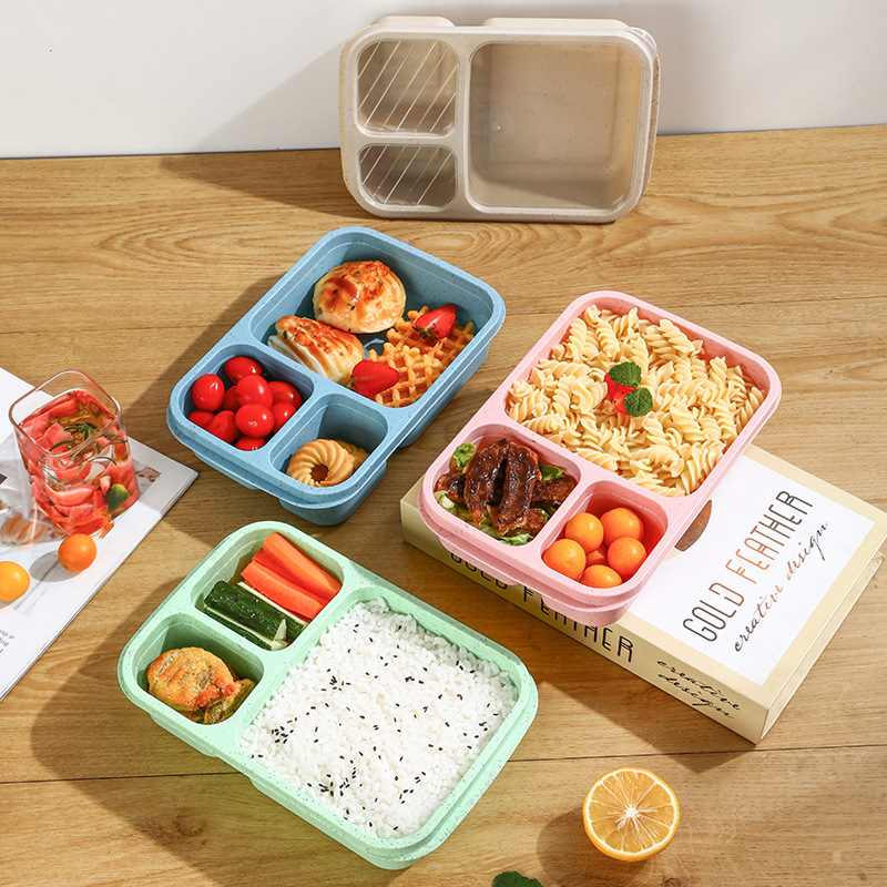 Fast Delivery Eco Friendly Microwaveable Leakproof BPA Free Food Container Wheat Straw Bento Lunch Box Kids