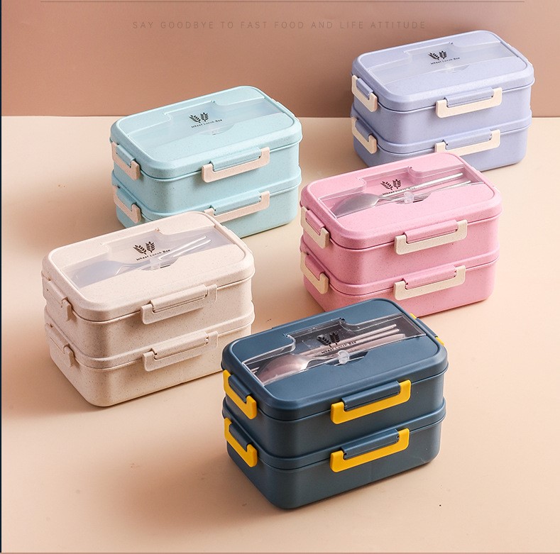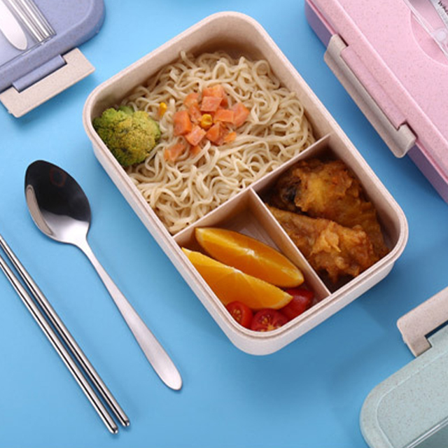 Food Containers 3 Compartment Sustainable Lunch Box Wheat Straw Lunch Bowl Set Bento Box for Kids