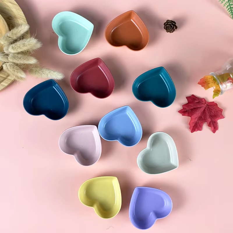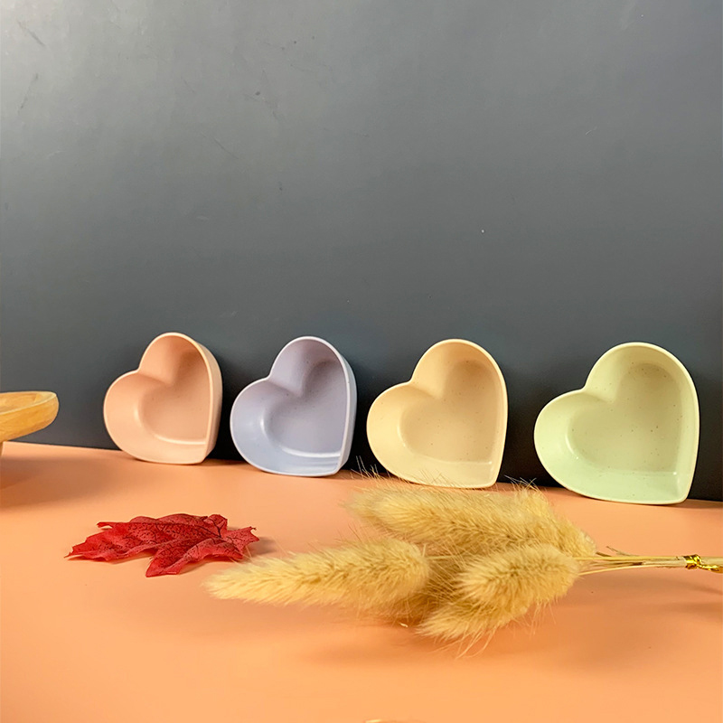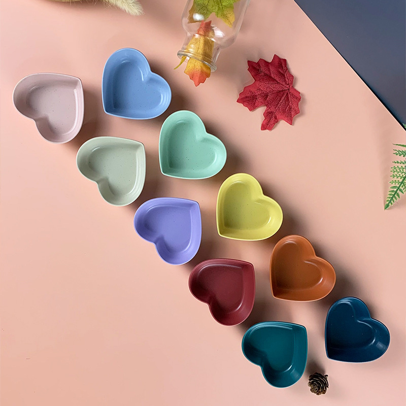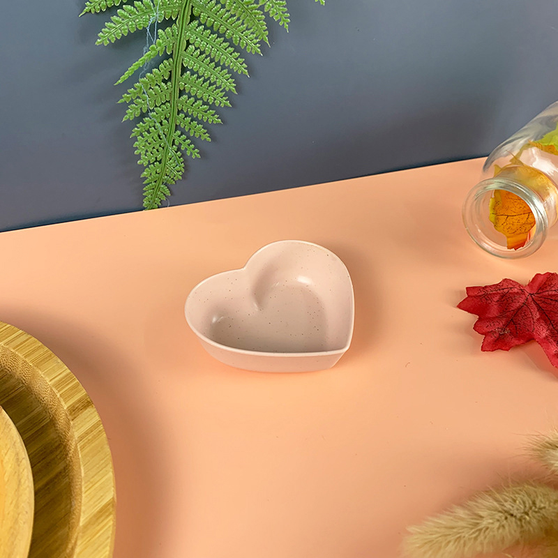 Heart Shaped Dish Fruit Snacks Plate Dinnerware Candy and Nut Serving Container Food Wheat Straw Dessert Plate