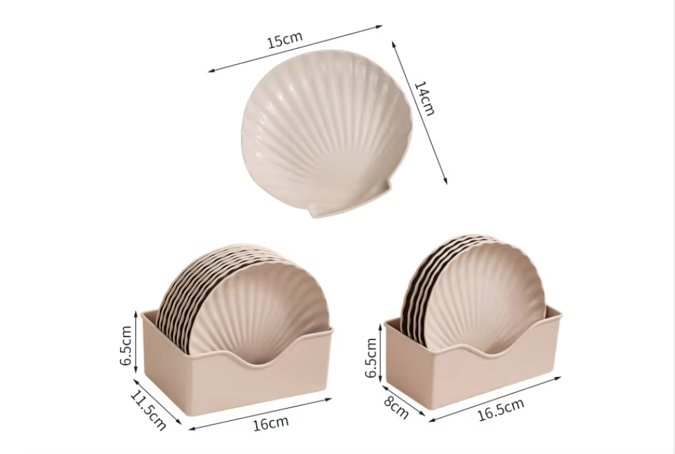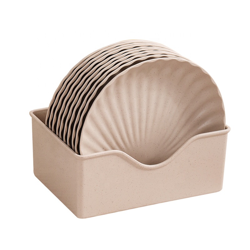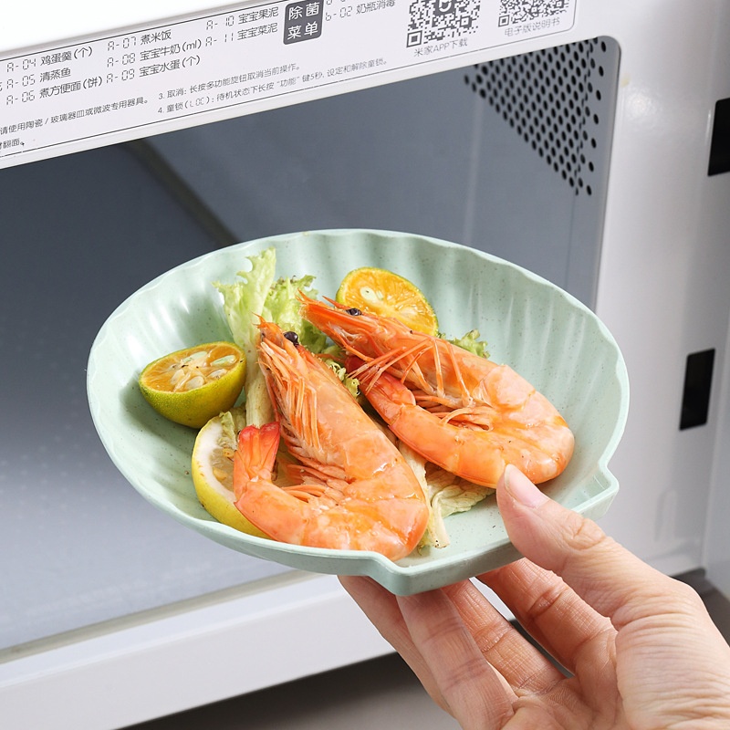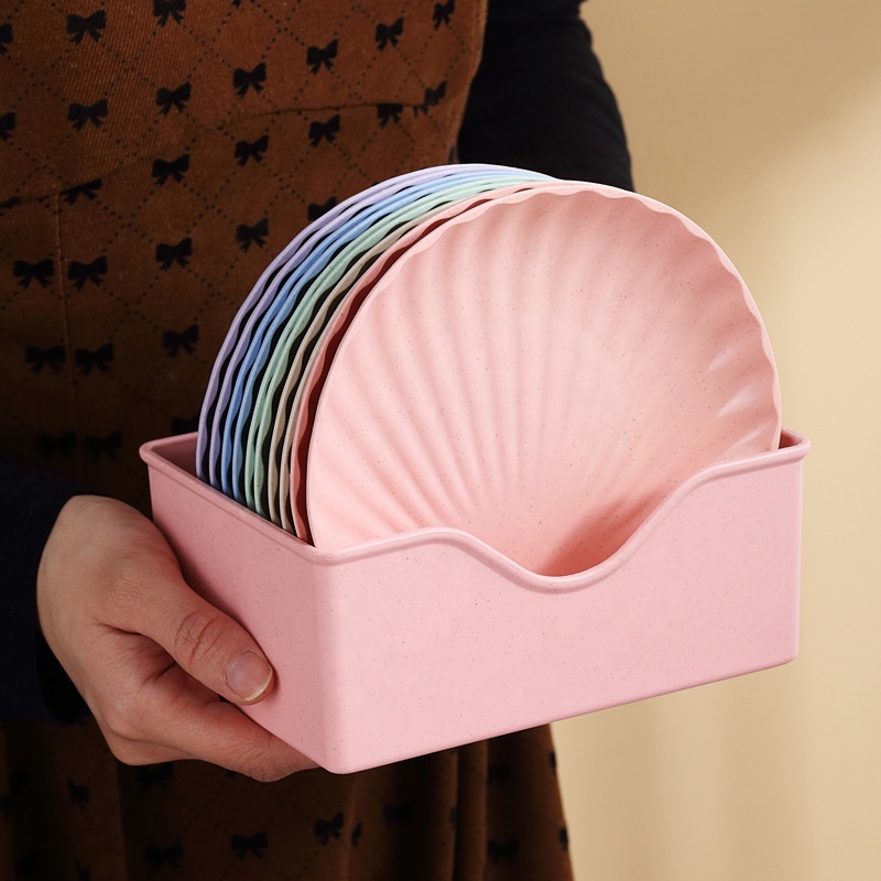 Multi Color Optional Shell Shaped 10 Pieces set Tableware Set Fruit Candy Dining Plate Wheat Straw Plastic Plate