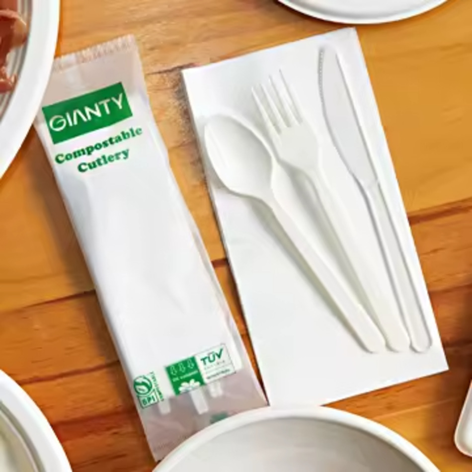 PLA tableware uses renewable plant starches such as corn and potatoes as raw materials, eliminating dependence on petroleum resources at the source and achieving resource recycling. Its core advantage lies in its natural biodegradability; under composting conditions, it can completely decompose into carbon dioxide and water within 6-12 months, avoiding the “white pollution” caused by traditional plastics and effectively alleviating pressure on soil and marine ecosystems.