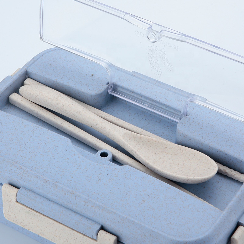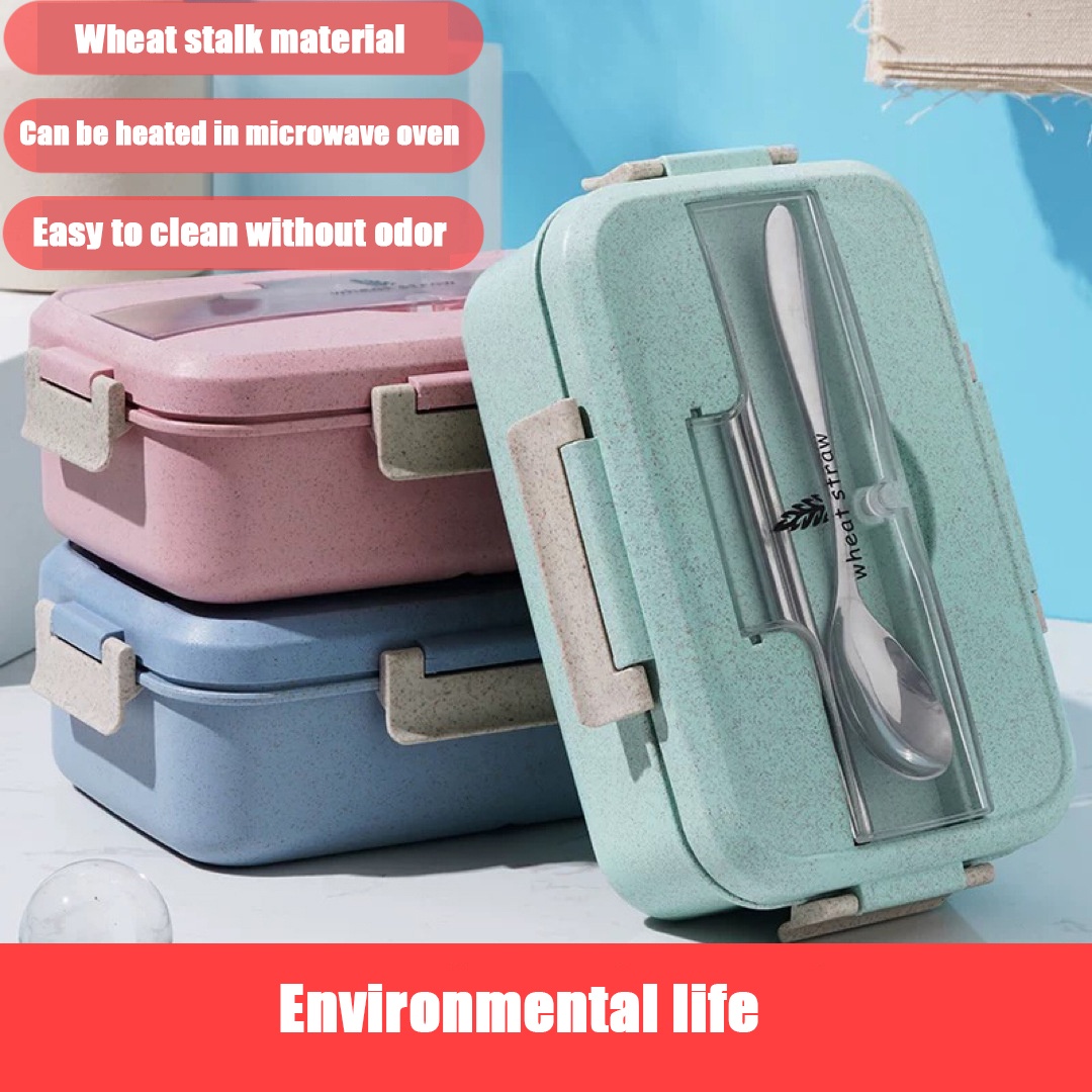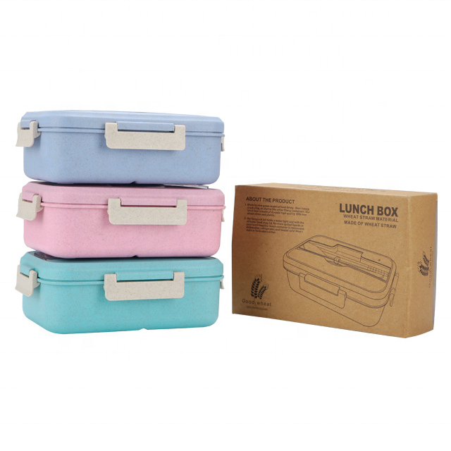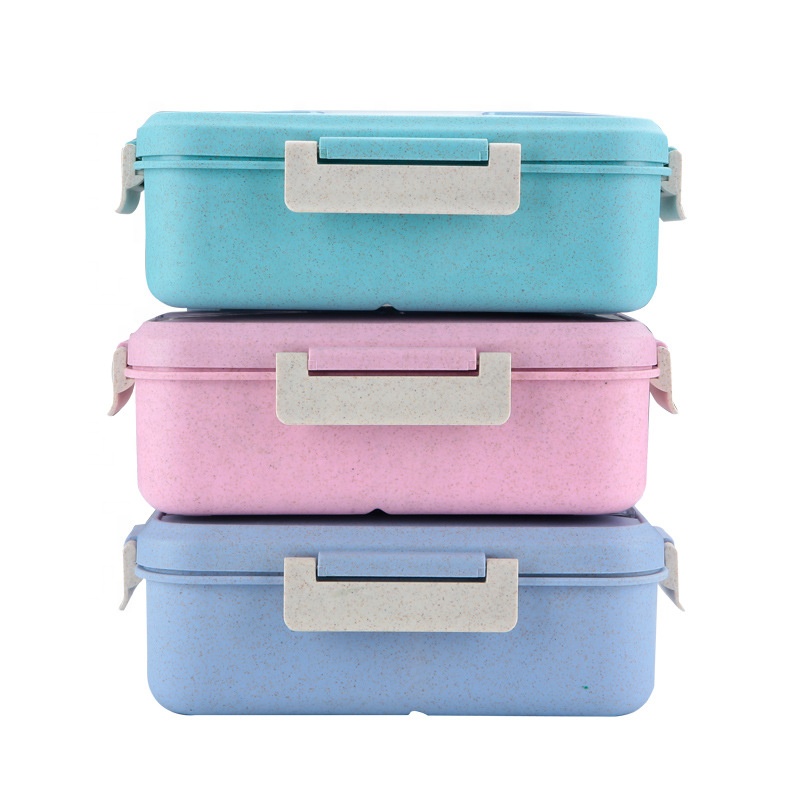 Popular Microwave Safe Bento Box Adult or Kids 3 Compartment Food Container Divided Rectangle Three Grid Wheat Straw Lunch Box
