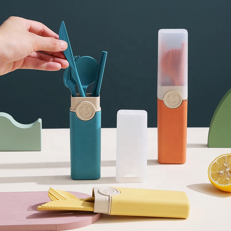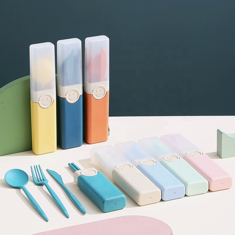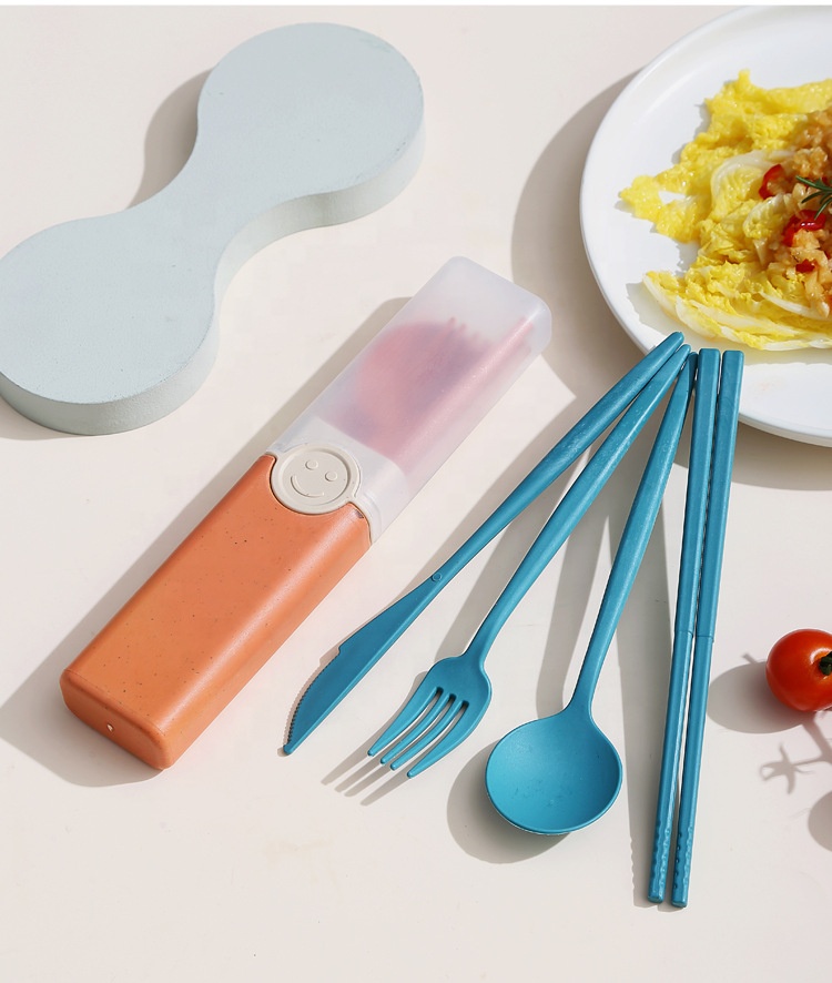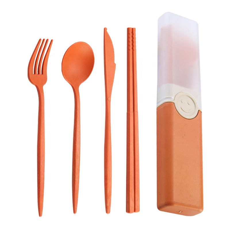 Portable Eco Friendly Wheat Straw Tableware Set Wheat Straw Fiber 4Pcs Cutlery Knife Chopsticks Fork and Spoon Dinnerware Set