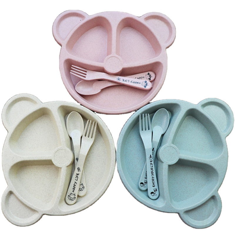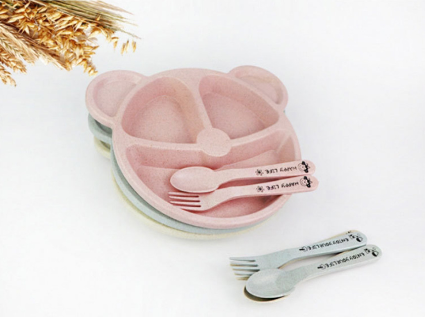 Promotional BPA Free Eco-friendly Food Grade Wheat Straw Tableware Plate Biodegradable Baby Plate Set