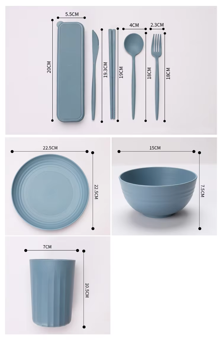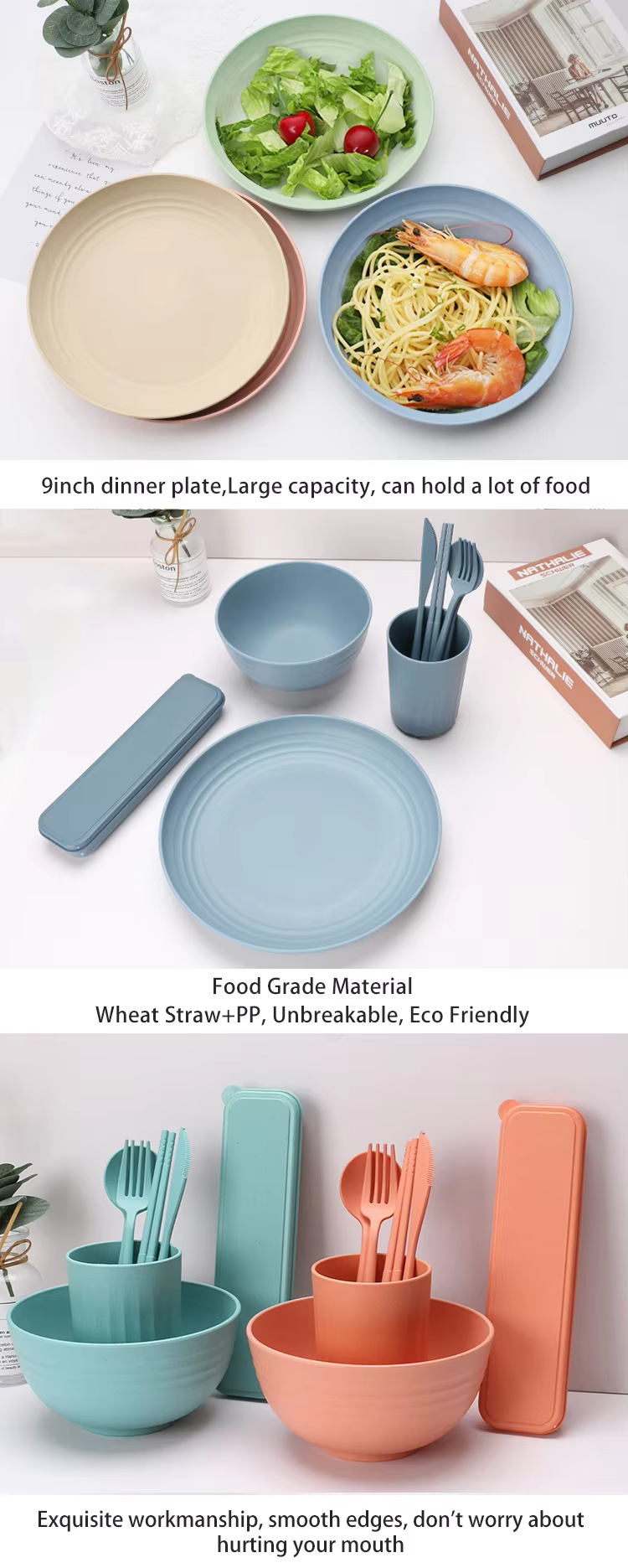Wheat Straw Dinnerware Sets Unbreakable Plates Sets Lightweight Wheat Straw Bowls and Plates Set with CutleryS