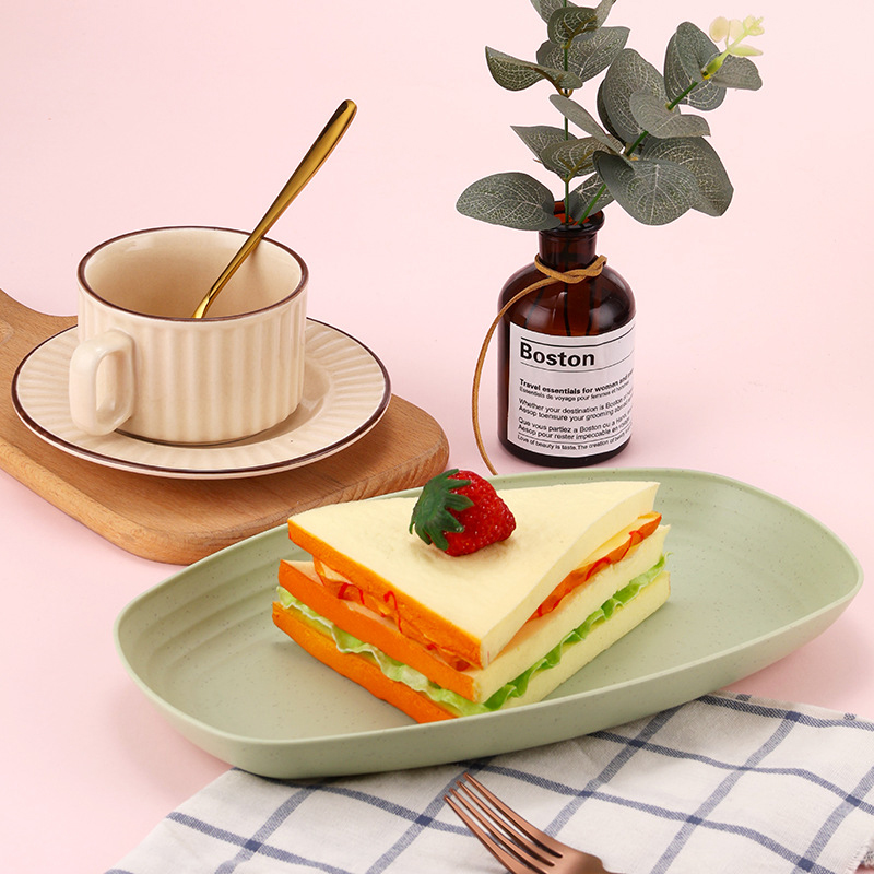 Wheat Straw Japanese Design Eco-Friendly Oval Plate Home Use Fish Dish Simple Steaming and Baking Plate