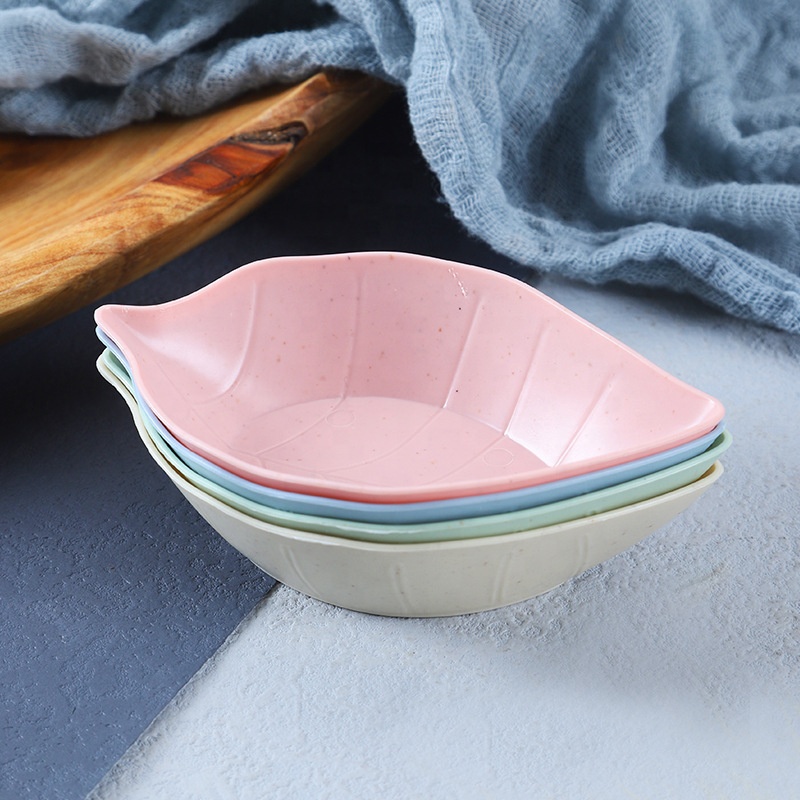 Wheat Straw Leaf Shaped Seasoning Plate Wheat Straw Bowl for Sauce Vinegar Seasoning Dish Kitchen Tableware Snack Plate Dish
