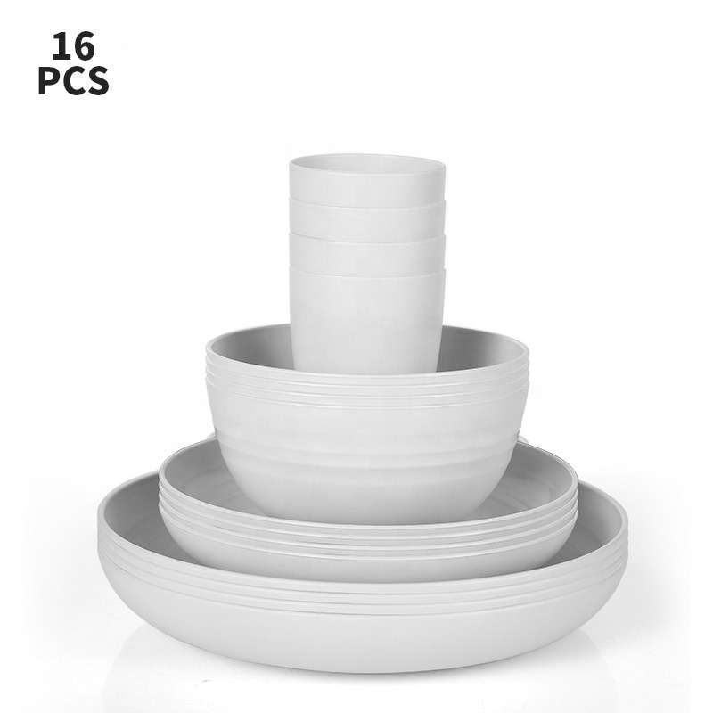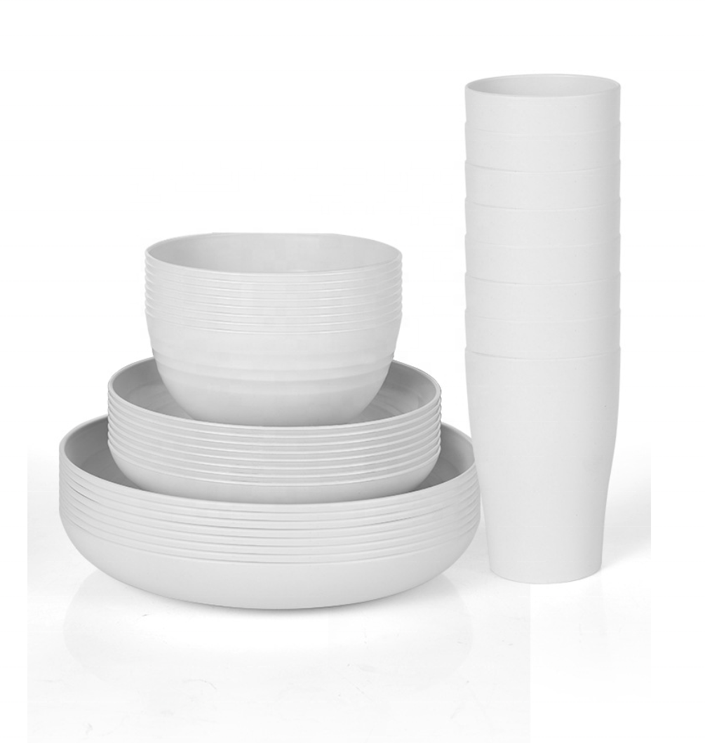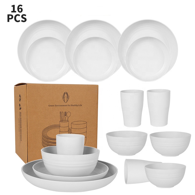 Wheat Straw Plastic Dinnerware Sets With Dinner Plates Bowls & Cups for Dishwasher & Microwave Safe Wheat Straw Cutlery Set